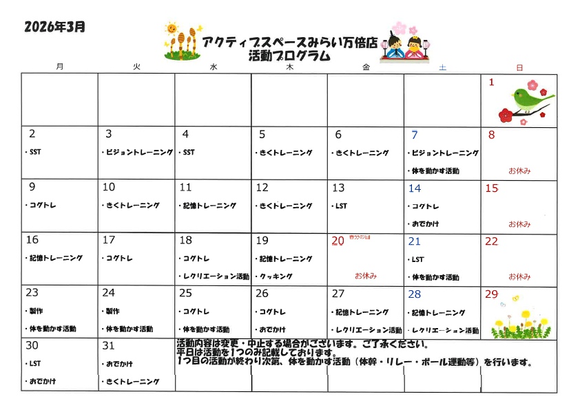 3月の後半には春休みになるため、みらいでも様々な活動やイベントを考えています☺